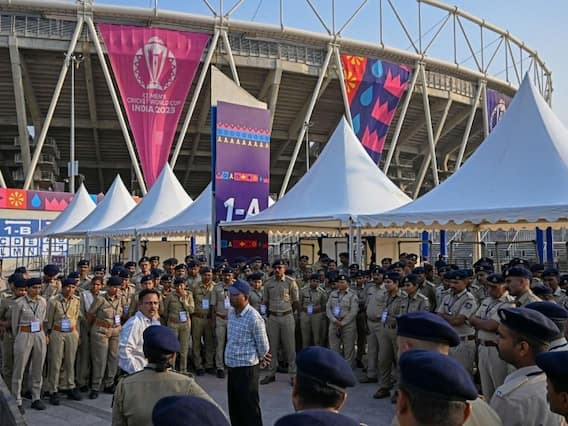 India vs Pakistan Match Narendra Modi Stadium: 2023 वनडे वर्ल्ड कप में कल (शनिवार) सबसे बड़ा मुकाबला खेला जाएगा. अहमदाबाद के नरेंद्र मोदी स्टेडियम में शनिवार, 14 अक्टूबर को भारत और पाकिस्तान के बीच मुकाबला होगा. इस हाई वोल्टेज मैच को लेकर गुजरात प्रशासन सख्त रवैया अपनाए है. दरअसल, भारत-पाक मैच से पहले नरेंद्र मोदी स्टेडियम छावनी में तब्दील कर दिया गया है.