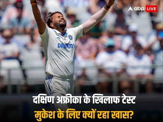 टीम इंडिया ने दक्षिण अफ्रीका को टेस्ट सीरीज के दूसरे मैच में 7 विकेट से हरा दिया था. मुकेश ने दक्षिण अफ्रीका की पहली पारी के दौरान 2.2 ओवरों में एक भी रन नहीं दिया था और 2 विकेट लिए थे. इसके साथ ही मुकेश ने 2 मेडन ओवर भी निकाले थे. उन्होंने दक्षिण अफ्रीका दूसरी पारी में 10 ओवर फेंके. इस दौरान 56 रन देकर 2 विकेट लिए थे. मुकेश ने 2 मेडन ओवर भी निकाले थे.