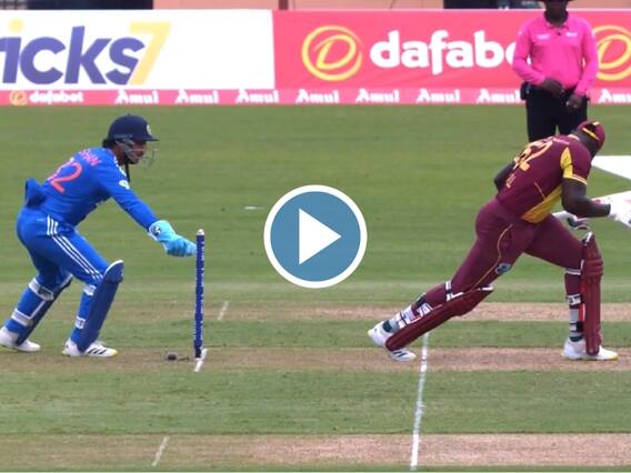 दरअसल दूसरे टी20 में ईशान किशन ने कीपिंग के दौरान वेस्टइंडीज़ के कप्तान रोवमैन पॉवेल को बड़े ही अनोखे ढंग से आउट करना चाहा, जिसका वीडियो तेज़ी से वायरल हो रहा है. वीडियो में देखा जा सकता है कि युजवेंद्र चहल ने पॉवेल को गेंद फेंकी जो वाइड हो गई. कीपिंग कर रहे ईशान ने गेंद पकड़ी और वो गेंद पकड़कर इंतज़ार करते रहे कि पॉवेल का पैर हवा में या क्रीज़ के बाहर जाए, जिससे वो स्टपिंग के ज़रिए उन्हें आउट कर सकें.
