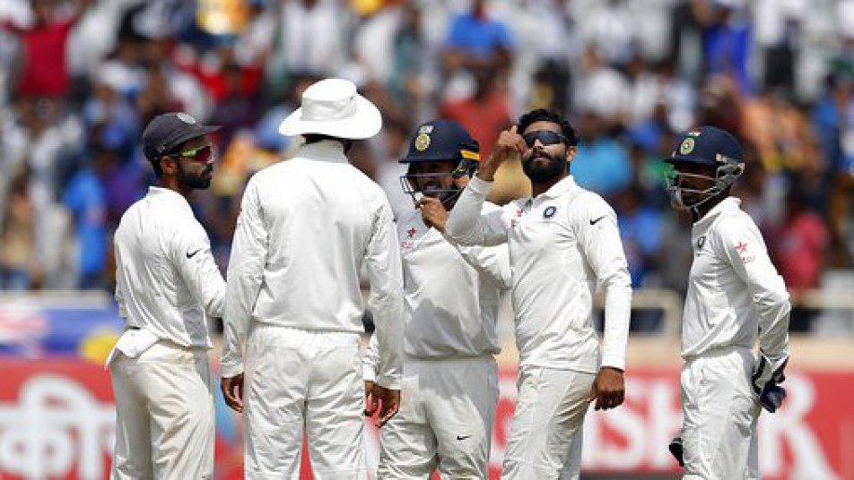 इसके बाद आए नाथन लॉयन (1) को जड़ेजा ने मैदान पर टिकने का मौका नहीं दिया और मुरली विजय के हाथों कैच आउट कर मेहमान टीम का नौंवा विकेट भी गिराया.