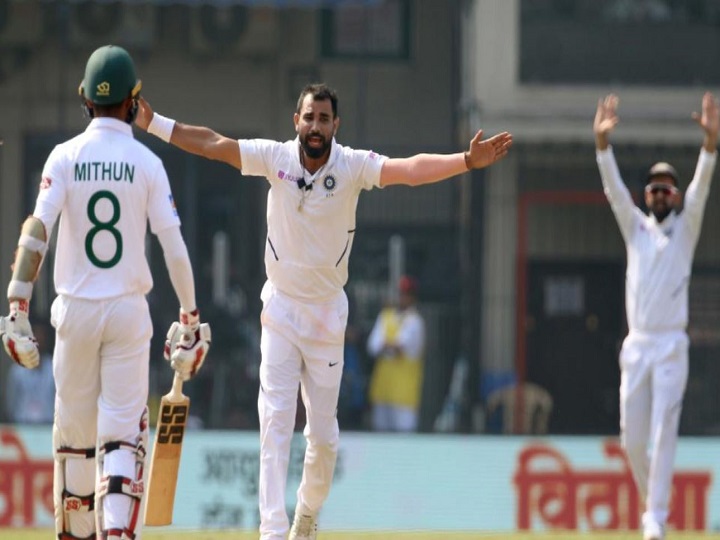 IND Vs BAN 1st Test Day 3 Lunch: बांग्लादेश के खिलाफ खेले जा रहे पहले टेस्ट के तीसरे दिन ही टीम इंडिया ने जीत की ओर कदम बढ़ा दिए हैं. तीसरे दिन लंच सेशन तक बांग्लादेश ने दूसरी पारी में 60 रन पर ही चार विकेट गंवा दिए हैं. इससे पहले टीम इंडिया तीसरे दिन बल्लेबाजी करने नहीं उतरी और उसने 493/6 के स्कोर पर ही पारी घोषित कर दी. टीम इंडिया ने पहली पारी में 343 रन की बढ़त ली थी. बांग्लादेश अभी भी इंडिया से 283 रन पीछे है और उसके हाथ में सिर्फ 6 विकेट बाकी हैं. भारत के लिए दूसरी पारी में शमी दो विकेट ले चुके हैं. बांग्लादेश की खराब शुरुआत विराट कोहली ने आज चौंकाते हुए सीधे बांग्लादेश को ही दूसरी पारी खेलने के लिए बुला लिया. बांग्लादेश के बल्लेबाज एक बार फिर भारतीय तेज गेंदबाजी के आगे ठिकते हुए दिखाई नहीं दे रहे हैं. महज 10 रन के स्कोर पर ही कायेस को उमेश यादव को बोल्ड कर दिया. दूसरे ओपनर इस्लाम भी ज्यादा देर टिक नहीं पाए. टीम का स्कोर 16 रन ही था कि इस्लाम इंशात शर्मा की गेंद पर बोल्ड हो गए. इसके तुरंत बाद बांग्लादेश के कप्तान 7 रन बनाकर शमी की गेंद पर आउट हुए. मिथुन ने दहाई का आंकड़ा पार किया, लेकिन वो भी 18 रन बनाकर शमी की गेंद पर आउट हो गए. लंच तक रहीम 9 रन बनाकर और मुदुल्लाह 6 रन बनाकर बल्लेबाजी कर रहे हैं.