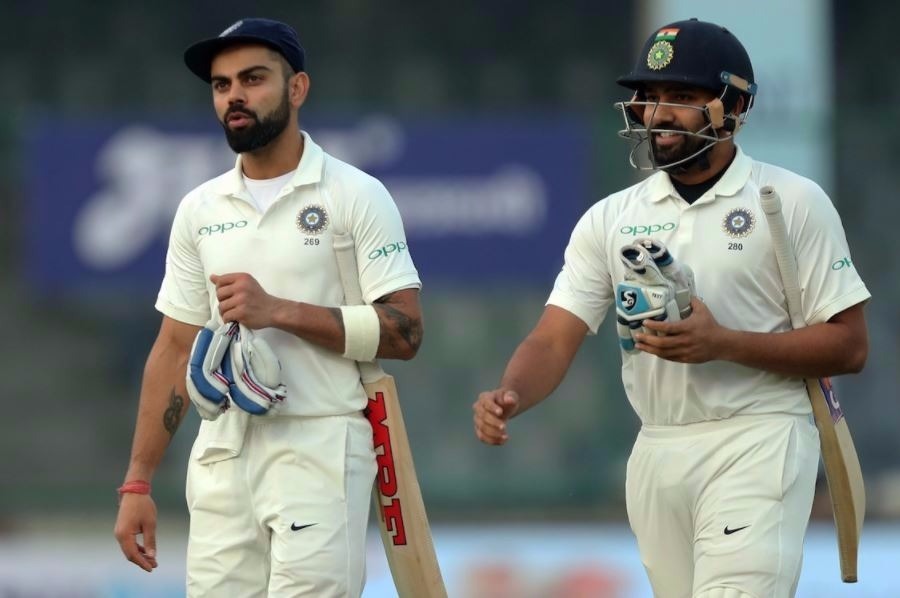 भारत ने कप्तान विराट कोहली (243) के रिकार्ड दोहरे शतक, विजय (155), रोहित शर्मा (65) की बेहतरीन पारियों के दम पर अपनी पहली पारी सात विकेट के नुकसान पर 536 रनों पर घोषित कर दी थी. श्रीलंकाई टीम के खिलाड़ियों द्वारा प्रदूषण की शिकायत करने के बाद दूसरे दिन के दूसरे सत्र में तीन बार दिन का खेल रोक दिया गया था. इसी से परेशान होकर भारतीय कप्तान ने पारी घोषित कर दी थी.