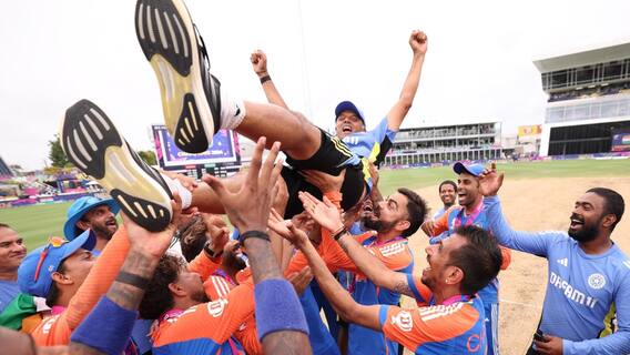 T20 World Cup 2024 Rahul Dravid: टीम इंडिया ने बीती रात (29 जून शनिवार) भारतीय फैंस की उस ख्वाहिश को पूरा कर दिया जिसका इंतज़ार करते हुए एक दशक से भी ज़्यादा का वक़्त गुज़र चुका था. रोहित शर्मा की कप्तानी वाली भारतीय टीम ने राहुल द्रविड़ (Rahul Dravid) की कोचिंग में खेलते हुए टी20 वर्ल्ड कप 2024 का खिताब अपने नाम किया. ट्रॉफी जीतने के बाद भारतीय खिलाड़ियों ने राहुल द्रविड़ को कंघे पर नहीं उठाया बल्कि हवा में उछाल दिया. दविड़ को हवा में उछालने का प्लान रोहित शर्मा (Rohit Sharma) और विराट कोहली (Virat Kohli) ने बनाया था.