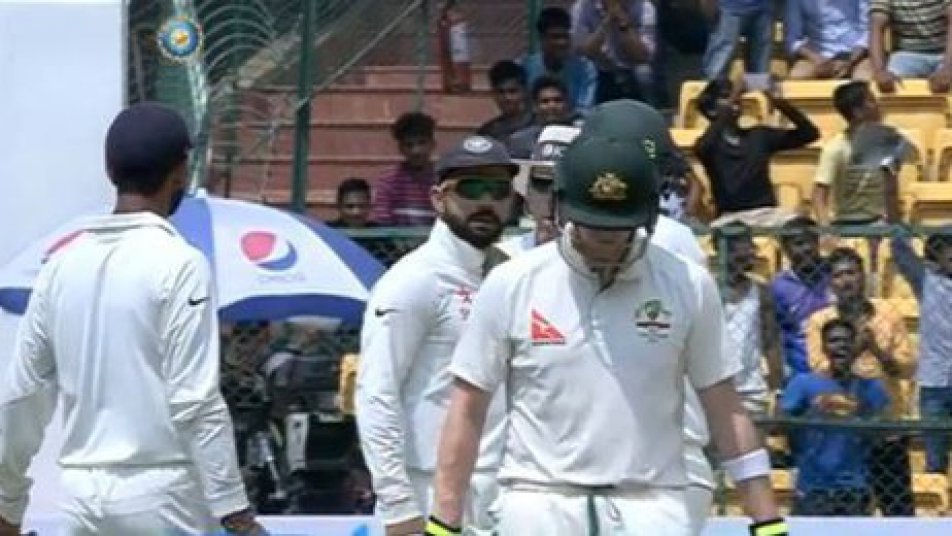 बेंगलुरू टेस्ट के चौथे दिन मंगलवार को आस्ट्रेलिया की दूसरी पारी के दौरान स्मिथ, उमेश यादव की गेंद पर पगबाधा करार दिए गए, लेकिन सीधे पवेलियन लौटने या डीआरएस की मांग करने की बजाय स्मिथ और हैंड्सकॉम्ब आस्ट्रेलियाई ड्रेसिंग रूम से संकेत मांगते नजर आए.