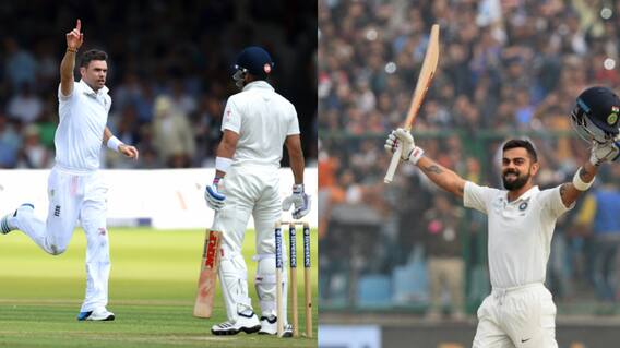 विराट कोहली और जेम्स एंडरसन की पहली भिड़ंत 2014 में हुई, जहां इंग्लैंड के दिग्गज ने कोहली पर दबदबा बना लिया था. उस समय एंडरसन ने कोहली को टेस्ट मैचों की 10 पारियों में 4 बार आउट किया था. मगर 2016 में 5 टेस्ट मैचों की सीरीज में कोहली ने बदला लेते हुए इंग्लैंड की गेंदबाजी की जमकर धुनाई की थी. 2018 की सीरीज में कोहली एक बार फिर इंग्लैंड टीम पर कहर बनकर टूटे, जहां 10 पारियों में उन्होंने 2 शतक और 3 अर्धशतक समेत 593 रन बनाए थे. एंडरसन इस पूरी सीरीज के दौरान कोहली को एक बार भी आउट नहीं कर सके.