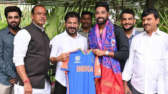 Mohammed Siraj Telangana CM A Revanth Reddy: मोहम्मद सिराज टी20 विश्व कप विनिंग टीम इंडिया का हिस्सा थे. सिराज भारतीय टीम के लिए कई मौकों पर शानदार प्रदर्शन कर चुके हैं. टीम इंडिया ने टी20 विश्व कप 2024 में दमदार प्रदर्शन करते हुए खिताब जीता. भारतीय टीम की जीत के बाद खिलाड़ियों को शानदार स्वागत हुआ. इस सिलसिले में तेलंगाना के मुख्यमंत्री रेवंत रेड्डी ने हाल ही में सिराज से मुलाकात की. उन्होंने सिराज के लिए सरकारी नौकरी और एक प्लॉट की घोषणा की है.