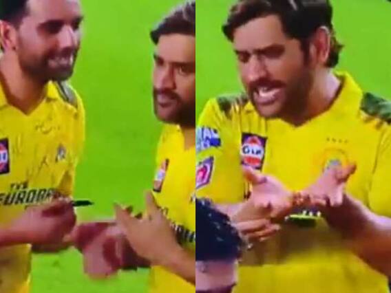 MS Dhoni And Deepak Chahar, IPL Final 2023: महेंद्र सिंह धोनी की कप्तानी में चेन्नई सुपर किंग्स 5वीं बार आईपीएल विजेता बनने में कामयाब रही. गुजरात टाइटंस (GT) के खिलाफ 16वें सीजन के फाइनल मुकाबले में रवींद्र जडेजा ने अपने चौके से टीम को डकवर्थ लुईस (DLS) नियमानुसार 5 विकेट से जीत दिलाने में अहम भूमिका अदा की. इस मैच के बाद चेन्नई के खिलाड़ी जहां एक तरफ काफी खुश नजर आ रहे थे. वहीं महेंद्र सिंह धोनी और दीपक चाहर का एक वीडियो भी जमकर वायरल हो रहा है.