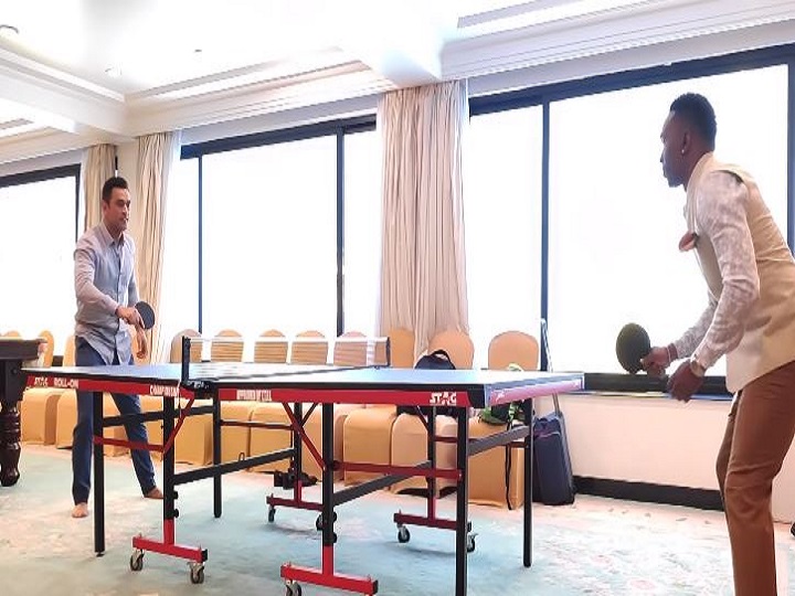 चेन्नई सुपर किंग्स ने अपने इंस्टाग्राम अकाउंट पर एक वीडियो शेयर किया है जिसमें धोनी और ब्रावो के बीच एक टेबल टेनिस का मुकाबला चल रहा है.