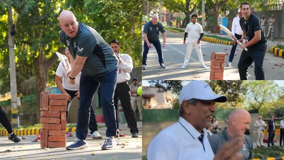 New Zealand Prime Minister Plays Street Cricket in Delhi: न्यूजीलैंड के प्रधानमंत्री क्रिस्टोफर लक्सन इस समय भारत दौरे पर हैं. गुरुवार, 19 मार्च को उन्होंने दिल्ली में बच्चों के साथ गली क्रिकेट खेला. ईंटो की विकेट बनाकर, सड़क पर बॉउंड्री लाइन खींचकर, उन्होंने बिलकुल आम लोगों की तरह इस खेल का आनंद लिया. उनके विरोधी टीम में न्यूजीलैंड के दिग्गज क्रिकेटर रॉस टेलर और स्पिनर एजाज पटेल थे जबकि उनका साथ दिया भारतीय विश्व कप विजेता कप्तान कपिल देव ने, जो उनकी टीम में खेल रहे थे.