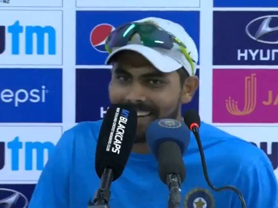 वायरल हो रहे इस वीडियो में आप देख सकते हैं कि जडेजा मैच के बाद प्रेस कॉन्फ्रेंस कर रहे होते हैं. इसमें वो टर्निंग ट्रैक के बारे में बात करते हुए दिखाई दिए. वीडियो में उन्होंने कहा, “टर्निंग ट्रैक पर एक पार्टनरशिप होती है. इसके बाद कोई भी नया बैट्समैन आएगा तो उनके लिए इतने फुटमार्क्स देखकर उधर ही उनकी...मतलब...” जडेजा की इस बात को सुनकर कॉन्फ्रेंस में मौजूद सभी लोग हंसने लगते हैं. जडेजा शायद यहां कुछ और कहना चाहते थे. लेकिन उन्होंने बात को घुमाते हुए आगे कहा, “वो उधर ही थोड़ा घबरा जाएंगे कि इतने फुटमार्क सामने हैं तो वो इतने कॉन्फिडेंस से डिफेंस नहीं कर पाएंगे.”
