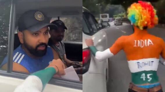 वीडियो में एक फैन भारतीय कप्तान की कार के पीछे भागता हुआ दिख रहा है. फिर रोहित शर्मा ने फैन के लिए कार रोक दी. वीडियो में देखा जा सकता है कि रोहित शर्मा को देखते ही फैन उनकी गाड़ी के पीछे भागने लगता है. फैन को भागता देख रोहित शर्मा गाड़ी रुकवाते हैं. गाड़ी रुकवाने के बाद रोहित उस फैन के साथ सेल्फी लेते हैं. हिटमैन का फैन तिरंगे के रंग में नजर आता है. इसके अलावा उसकी पीठ पर 'इंडिया', 'रोहित' और '45' लिखा हुआ था. यहां देखें वीडियो...
