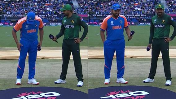 IND vs PAK T20 World Cup 2024: भारत और पाकिस्तान का मैच 9 जून को न्यूयॉर्क के नसाउ स्टेडियम में खेला गया. भारत को पहले बल्लेबाजी का न्योता मिला, लेकिन जब टॉस हुआ तो एक ऐसी घटना हुई कि रोहित को देख सबकी हंसी छूट गई है. दरअसल टॉस बारिश के कारण देरी से शुरू हुआ, लेकिन जब दोनों कप्तान टॉस के लिए मैदान पर आए तो रोहित शर्मा भूल गए कि सिक्का कहां है. सिक्का रोहित को उछालना था और जब रवि शास्त्री ने उनसे सिक्का उछालने के लिए कहा तो 'हिटमैन' अपनी जेब खंगालते नजर आए.