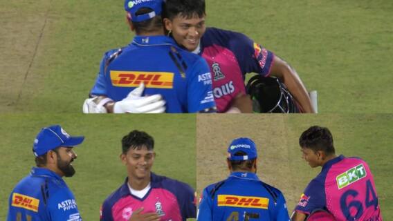 बहरहाल, मुंबई इंडियंस बनाम राजस्थान रॉयल्स मुकाबले का एक वीडियो सोशल मीडिया पर तेजी से वायरल हो रहा है. दरअसल, यशस्वी जायसवाल के शतक के बाद मुंबई इंडियंस के खिलाड़ी रोहित शर्मा ने युवा बल्लेबाज को गले से लगा लिया. इस दौरान दोनों खिलाड़ियों के चेहरे पर मुस्कान थी. रोहित शर्मा ने गले लगाने के बाद यशस्वी जायसवाल को बधाई दी. सोशल मीडिया पर वीडियो तेजी से वायरल हो रहा है. इसके अलावा सोशल मीडिया यूजर्स लगातार कमेंट्स कर अपनी प्रतिक्रिया दे रहे हैं.
