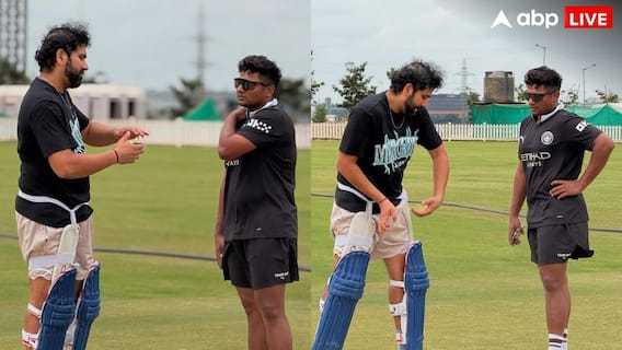 Rohit Sharma And Sarfaraz Khan Training Session: भारत की वनडे टीम के कप्तान रोहित शर्मा ऑस्ट्रेलिया दौरे से पहले लगातार प्रैक्टिस कर रहे हैं. रोहित के साथ इस बार प्रैक्टिस सेशन में भारत के युवा खिलाड़ी सरफराज खान भी नजर आए. रोहित के साथ सरफराज के प्रैक्टिस करते हुए फोटो सामने आए हैं, जिनमें हिटमैन, सरफराज को बैटिंग टिप्स देते नजर आ रहे हैं. सरफराज भी रोहित की बात को बड़े ही गौर से सुन रहे हैं. इन फोटो को देखकर ऐसा लग रहा है कि रोहित टीम इंडिया के लिए एक नया हिटमैन तैयार कर रहे हैं.