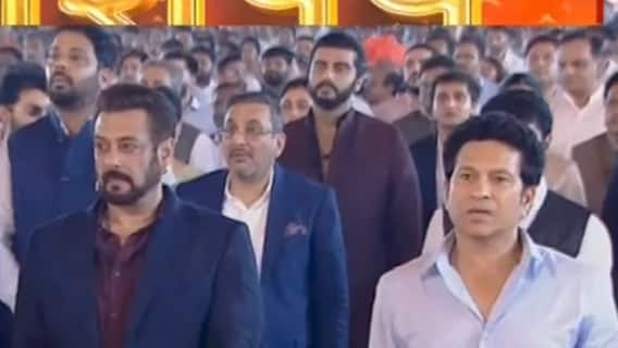 सलमान खान के एक ओर सचिन तेंदुलकर खड़े हैं, वहीं दूसरी तरह संजय दत्त खड़े हैं. इस शपथ समारोह में सचिन हल्के नीले रंग की शर्ट में नजर आ रहे हैं और उनके पीछे अर्जुन कपूर और विकी कौशल को भी देखा जा सकता है. यह समारोह मुंबई के आजाद मैदान में हुआ, जहां मुकेश अंबानी और गौतम अडानी समेत बहुत बड़े-बड़े बिजनेस टायकून नजर आए. बता दें कि इस समारोह में भारत के प्रधानमंत्री नरेंद्र मोदी के अलावा बीजेपी के अंडर आने वाले प्रदेशों के मुख्यमंत्री भी यहां मौजूद रहे.