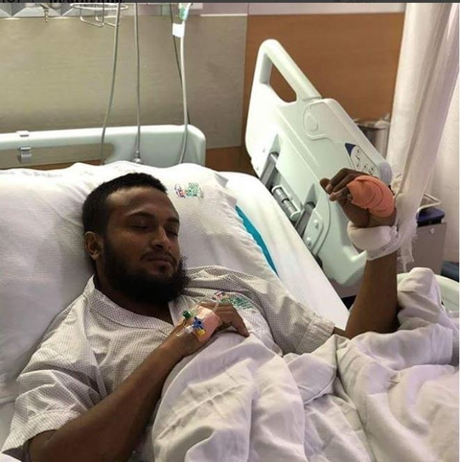 शाकिब ने इंस्टाग्राम पर एक पोस्ट शेयर करते हुए लिखा कि 'जब मैं एशिया कप से घर लौट रहे थे तो मुझे लगा नहीं कि ऐसी स्थिती होगी. लेकिन हाथ में आसमान्य दर्द और सूजन की वजह से अस्पताल ने तुरंत मेरी सर्जरी की. चोट की वजह से उंगलियों के अंदर इंफेकशन 60 फीसदी से ज्यादा पहुंच गया था. यहां जल्दी पहुंचने की वजह से मैं बच सका लेकिन मुझे अभी एक और सर्जरी की ज़रूरत होगी.'