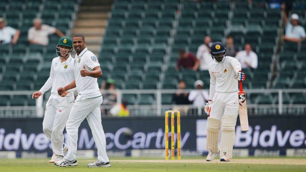 फिलैंडर ने 17 रन देकर दो और रबाड़ा ने 26 रन देकर दो विकेट हासिल किये. इस सीरीज में श्रीलंकाई टीम पूरी तरह विफल रही है और 0-2 से पिछड़ रही है. हालांकि दिन के शुरूआती दिन उसके गेंदबाजों ने शानदार खेल दिखाया और दक्षिण अफ्रीका के बचे हुए सात विकेट 88 रन के अंदर झटक लिये.