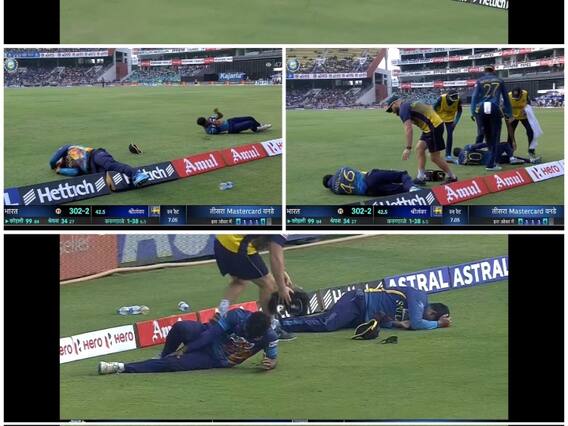 IND vs SL Viral Video: भारत और श्रीलंका के बीच सीरीज का आखिरी वनडे मैच तिरूवनंतपुरम में खेला जा रहा है. इस मैच में टीम इंडिया ने श्रीलंका के सामने जीत के लिए 50 ओवर में 391 रनों का विशाल लक्ष्य रखा है. बहरहाल, भारतीय पारी के दौरान बाउंड्री बचाने के चक्कर में दो श्रीलंकाई खिलाड़ी आपस में ही टकरा गए. दोनों खिलाड़ियों के बीच टक्कर इतनी भीषण थी कि अशेन बंडारा को स्ट्रेचर के सहारे मैदान से बाहर ले जाया गया.
