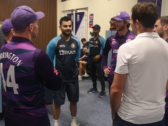 दरअसल, स्कॉटलैंड की टीम सुपर-12 ग्रुप के अपने सभी 4 मैच हार चुकी है. टीम इंडिया ने भी स्कॉटलैंड के खिलाफ एकतरफा अंदाज में जीत दर्ज कर ली थी. एक के बाद एक बड़ी हार से परेशान स्कॉटलैंड के खिलाड़ियों को जब भारतीय खिलाड़ियों से क्रिकेट की कुछ बारीकियां सीखने का मौका मिला तो बस ड्रेसिंग रूम में सीखने-सिखाने का दौर शुरू हो गया.