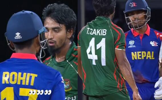 Tanzim Hasan Sakib and Rohit Paudel Fight: टी20 वर्ल्ड कप 2024 का 37वां मैच 17 जून को खेला गया. यह मैच बांग्लादेश और नेपाल के बीच खेला गया. जिसे बांग्लादेश ने 21 रन से जीत लिया. लेकिन इस मैच में एक घटना ने सबका ध्यान खींचा. जिस पर अब इंटरनेशनल क्रिकेट काउंसिल (ICC) ने सख्त कार्रवाई की है. यह सख्त कार्रवाई बांग्लादेश के तेज गेंदबाज तंजीम हसन साकिब (Tanzim Hasan Sakib) के खिलाफ की गई है.