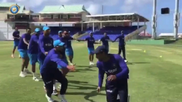 #TeamIndia members are in a playful mood as they indulge in a chain game #WIvINDhttps://t.co/7EtGVhzawa