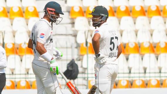 पहला विकेट जल्दी गिर जाने के बाद पाकिस्तान के कप्तान शान ने तेज-तर्रार बल्लेबाजी करते हुए दूसरे सेशन में ड्रिक्स से पहले 102 गेंदो में 100 रन बना लिए थे. इस खबर को लिखे जाने तक पाकिस्तानी कप्तान दूसरे सेशन की समाप्ति पर 142 गेंदों में 11 चौके और 2 छक्कों की मदद से 130 रनों पर नाबाद हैं. वहीं उनके साथ अब्दुल्लाह शफीक क्रीज पर मौजूद हैं. शफीक ने दूसरा सेशन पूरा होने तक 161 गेंदों में 10 चौके और 1 छक्के की मदद से 94 रन बना लिए हैं.
