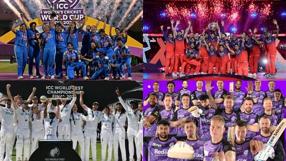 क्रिकेट की दुनिया में साल 2025 में कई नए चैंपियंस बने, जिन्होंने सालों के सूखे को खत्म करते हुए ट्रॉफी अपने नाम की. हाल ही में भारतीय महिला टीम ने पहली बार वनडे वर्ल्ड कप जीता है. वहीं इस साल टीम इंडिया के चैंपियन बनने से पहले, बिग बैश लीग में हॉबार्ट हरिकेन्स (BBL), आईपीएल में रॉयल चैलेंजर्स बैंगलोर (IPL), विश्व टेस्ट चैंपियनशिप को दक्षिण अफ्रीका (WTC) ने जीतकर इतिहास रच दिय. ये ऐसा साल रहा जहां क्रिकेट जगत के चार मेजर टूर्नामेंट में चार नए चैंपियंस हमें देखने को मिले.
