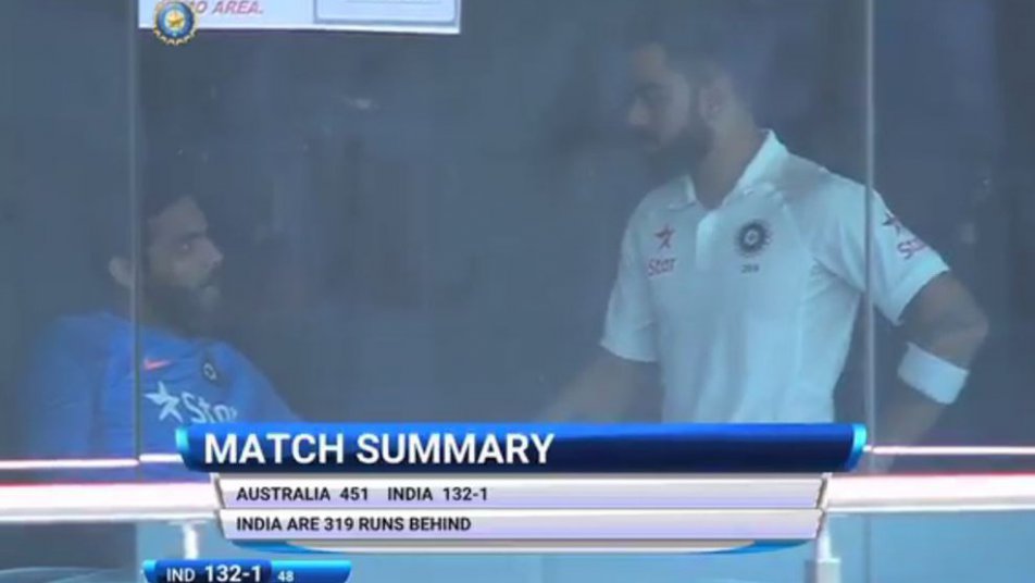 टेस्ट मैच में ऑस्ट्रेलियाई टीम ने टटॉस जीतकर पहले बल्लेबाज़ी करते हुए कप्तान स्टीव स्मिथ के नाबाद 178 रनों की मदद से भारत के सामने 451 रनों का विशाल स्कोर खड़ा किया था. भारत के लिए पहली पारी में रविन्द्र जडेजा ने लाजवाब गेंदबाज़ी करते हुए 5 विकेट अपने नाम किए. जिसके जवाब में भारतीय टीम को केएल राहुल और मुरली विजय ने अर्धशतक जमाकर मजबूत शुरूआत दी है.