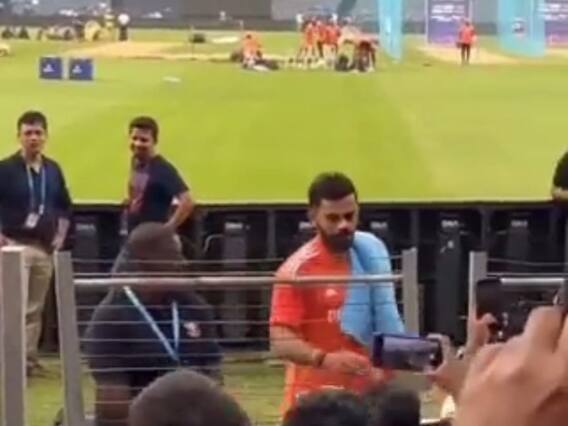 Virat Kohli Giving Autograph To Fans: गुरूवार को भारतीय टीम के सामने बांग्लादेश की चुनौती होगी. दोनों टीमों के बीच मुकाबला पुणे में खेला जाएगा. वहीं, यह मुकाबला भारतीय समयनुसार दोपहर 2 बजे शुरू होगा. बहरहाल, सोशल मीडिया पर विराट कोहली का एक वीडियो तेजी से वायरल हो रहा है. सोशल मीडिया पर वायरल वीडियो में विराट कोहली प्रैक्टिस सेशन के वक्त फैंस को ऑटोग्राफ देते नजर आ रहे हैं. यह वीडियो पुणे क्रिकेट स्टेडियम का है.