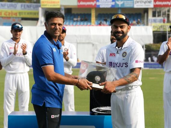 टीम इंडिया और श्रीलंका के बीच टेस्ट सीरीज का पहला मैच मोहाली में खेला जा रहा है. यह पूर्व भारतीय कप्तान विराट कोहली के करियर का 100वां टेस्ट मैच है. मुकाबला शुरू होने से पहले कोच राहुल द्रविड़ ने कोहली को 100वें मैच के लिए कैप दी. इस दौरान टीम इंडिया के सभी खिलाड़ी मौजूद रहे. इसकी फोटो बीसीसीआई ने ट्वीट की है.