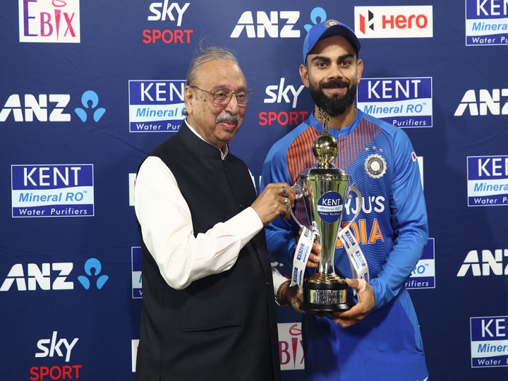 भारत और न्यूजीलैंड के बीच हुए 5 टी20 मैचों की सीरीज को विराट एंड कंपनी ने जीत लिया है और वाइटवॉश कर पहली बार न्यूजीलैंड में ऐसा कारनामा किया है. इससे पहले टीम इंडिया अब तक एक भी सीरीज न्यूजीलैंड में नहीं जीत पाई थी लेकिन कल ये सबकुछ पीछे छूट गया. जीत के बाद विराट ने कहा कि, "हममें से हर कोई इस सीरीज में जीत को लेकर गर्व महसूस कर रहे हैं. मैं समझता हूं कि हमने हमेशा इस बात पर जोर दिया है कि हमें अंतत: जीत के लिए प्रयास करना है. ऐसा जब होता है तो अच्छा लगता है." शुरुआती चार मैचों में जीत हासिल करने के बाद कोहली ने खुद को आराम देने का फैसला किया और टीम की कमान रोहित शर्मा ने सम्भाली. भारत ने टॉस जीतकर पहले खेलते हुए रोहित के अर्धशतक की बदौलत तीन विकेट पर 163 रन बनाए और फिर गेंदबाजों ने उम्दा प्रदर्शन करते हुए भारत को सात रनों से जीत दिला दी. रोहित बल्लेबाजी के दौरान चोटिल हुए और फील्डिंग के लिए नहीं आ सके. लोकेश राहुल ने उनकी गैरमौजूदगी में कप्तानी की. कोहली ने कहा, "रोहित के साथ जो हुआ, आप ऐसा बिल्कुल नहीं देखना चाहेंगे लेकिन कमाल की बात यह है कि उनके नहीं रहते हुए भी हमारे साथियों ने दबाव में खुद को साबित किया और टीम के लिए जीत हासिल की. मैं बाहर देखकर काफी खुश हो रहा था कि मेरी मेरे और रोहित के बगैर भी दबाव झेल सकती है और यह क्रम आने वाले कई सालों तक चलेगा, ऐसे मुझे यकीन है." अब दोनों टीमों के बीच तीन वनडे मैचों की सीरीज खेली जाएगी, जिसकी शुरुआत बुधवार से होगी.