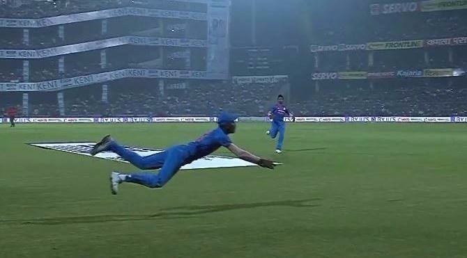 नई दिल्ली: क्रिकेट के मैदान पर हार्दिक पांड्या को आपने गेंदबाजी और बल्लेबाजी करते तो देखा ही है, लेकिन न्यूजीलैंड के खिलाफ दिल्ली में खेले गए पहले टी-20 मुकाबले में पांड्या ने फील्डिंग के दौरान भी एक बड़ा कमाल कर दिखाया.