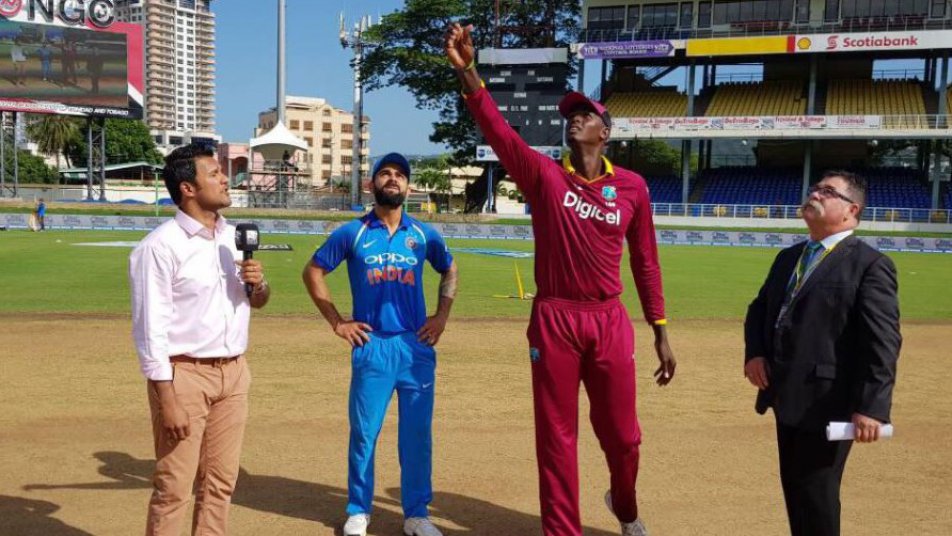 पोर्ट ऑफ स्पेन: चैंपियंस ट्रॉफी के फाइनल मुकबाले में हार के बाद टीम इंडिया वेस्टइंडीज दौरे पर है. वेस्टइंडीज क्रिकेट टीम के कप्तान जेसन होल्डर ने पांच वनडे मैचों की सीरीज के पहले मैच में टॉस जीतकर गेंदबाजी का फैसला किया है.