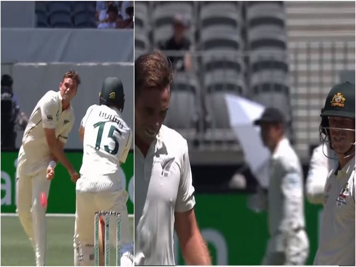 ऑस्ट्रेलिया और न्यूजीलैंड के बीच पहला टेस्ट चल रहा है. इस दौरान डेविड वॉर्नर को पहले ही दिन न्यूजीलैंड के एक गेंदबाज की हरकत से झटका लग गया. डेविड वॉर्नर और जो बर्न्स बल्लेबाजी कर रहे थे और दूसरी तरफ से न्यूजीलैंड के गेंदबाज टिम साउथी गेंदबाजी कर रहे थे. तभी बर्न्स ने साउथी के खिलाफ एक डिफेंसिव शॉट खेला लेकिन इसके तुंरत बाद जो हुआ उसने सबको चौंका दिया. बर्न्स के शॉट खेलते ही साउथी ने ऐसा थ्रो फेंका जिससे बर्न्स के हाथों पर गेंद लगी. इस दौरान सभी चौंक गए कि साउथी ने आखिर ऐसा क्यों किया क्योंकि बर्न्स क्रीज में मौजूद थे. इसके बाद नॉन स्ट्राइक एंड पर खड़े डेविड वॉर्नर भी चौंक गए और उन्होंने साउथी को जवाब दिया. कुछ ऐसी थी दोनों खिलाड़ियों के बीच बातचीत