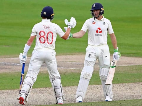 मुश्किल में फंसी इंग्लैंड को ओली पोप और जोस बटलर ने संभाला. पोप 142 गेंदो में 11 चौकों की मदद से 91 रन बनाकर क्रीज़ पर मौजूद हैं. टेस्ट क्रिकेट में पोप का ये चौथा अर्धशतक है. वहीं जोस बटलर पांच चौकों और दो छक्कों की बदौलत 56 रन बनाकर खेल रहे हैं. यह दोनों बल्लेबाज़ अब तक पांचवें विकेट के लिए 136 रनों की साझेदारी कर चुके हैं.