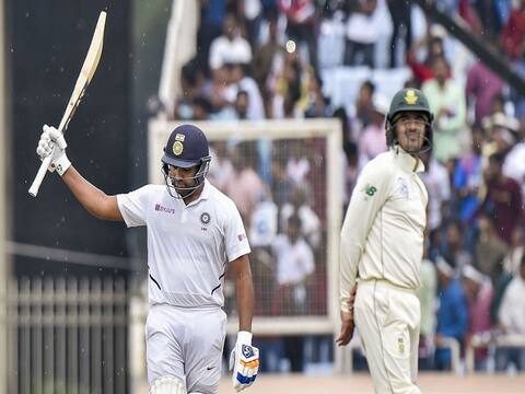 रांची: भारत और दक्षिण अफ्रीका के बीच तीसरे टेस्ट मैच के पहले दिन रांची में एक ऐसा मौका आया जब रोहित शर्मा को अपने शतक पूरे करने के लिए बादल से कुछ देर बाद बरसने की अपील करनी पड़ी. दरअसल, भारतीय सलामी बल्लेबाज रोहित शर्मा 95 के स्कोर पर बैटिंग कर रहे थे तभी हल्की बारिश होनी लगी. रोहित शर्मा नहीं चाहते थे कि बारिश के कारण मैच रुके. उन्होंने चिल्लाकर बादल से 'अभी नहीं' बरसने की अपील की. इसके बाद रोहित शर्मा ने अगली ही गेंद पर छक्के के साथ अपना शतक पूरा किया.