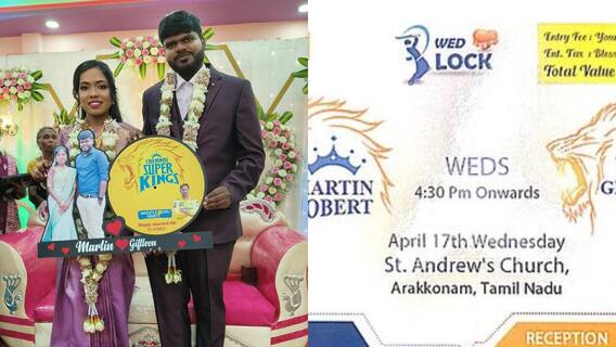 चेन्नई सुपर किंग्स की थीम वाला शादी का कार्ड सोशल मीडिया पर तेज़ से वायरल हो रहा है. इस कार्ड को चेन्नई सुपर किंग्स के मैच टिकट की तरह डिजाइन किया गया. कार्ड में एंट्री फीस की जगह, 'आपका प्यार' लिखा गया, टैक्स की जगह, 'आशीर्वाद' और टोटल वैल्यू की जगह, 'आपकी उपस्थिति' लिखी गई. इसके अलावा जैसे दो टीमों का नाम लिखा जाता हैं, वहां बीच में वेड्स लिखकर कपल का नाम लिखा गया. इसके आगे शादी का दिन और तारीख वेन्यू के साथ लिखी गई. इस कार्ड को बड़े ही क्रिएटिव तरीके के डिजाइन किया गया है. यहां देखें वायरल कार्ड...