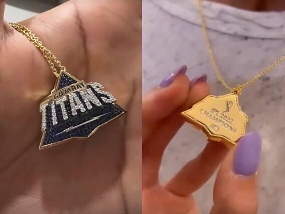 यह गिफ्ट एक कस्टमाइज किया गया पेंडेट है, जिस पर एक ओर गुजरात टाइटंस व दूसरी ओर IPL 2022 चैंपियंस (कप्तान) लिखा हुआ है. वीडियो में दिखाई देता है कि हार्दिक पांड्या इस पेंडेट को गले में पहने हुए हैं. वीडियो के बैकग्राउंड में गुजरात टाइटंस का एंथम सॉन्ग भी सुनाई दे रहा है.