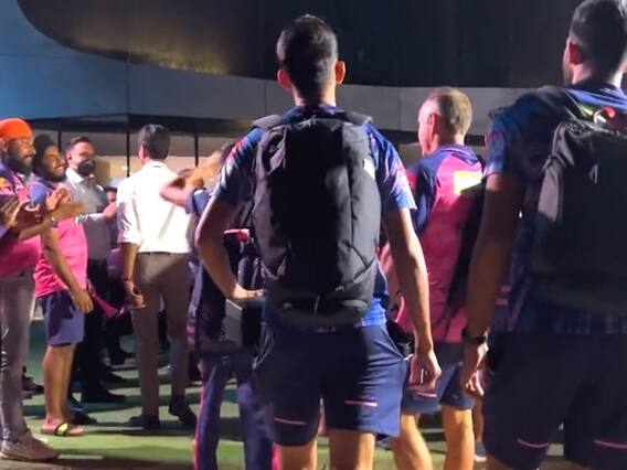 RCB vs RR: IPL 2022 के दूसरे क्वालीफायर (Qualifier 2) मुकाबले में राजस्थान रॉयल्स (RR) ने रॉयल चैलेंजर्स बैंगलोर (RCB) को 7 विकेट से हराया. इस खास जीत की बदौलत राजस्थान की टीम 14 साल बाद IPL के फाइनल (IPL Final) में पहुंच गई. स्टेडियम में तो राजस्थान की जीत पर फैंस झूम ही रहे थे लेकिन जब राजस्थान की टीम जीत के बाद अपनी होटल पहुंची तो यहां होटल का पूरा स्टॉफ मस्ती के मूड में नजर आया. होटल स्टाफ ने 'हल्ला बोल' गीत के साथ विजेता टीम का स्वागत किया.