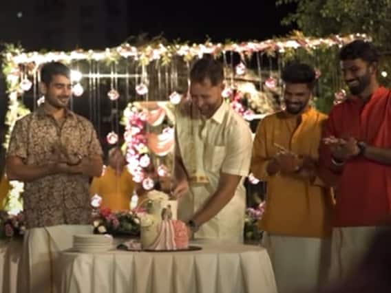 Devon Conway Celebration Video: चेन्नई सुपर किंग्स (CSK) के बल्लेबाज डेवोन कॉन्वे ने हाल ही में आईपीएल सीज़न के बीच टीम के खिलाड़ियों के साथ अपनी प्री-वेडिंग पार्टी की थी. सेलिब्रेशन के दौरान चेन्नई के कई खिलाड़ी भारत की पारंपरिक ड्रेस पहने और जमकर मस्ती करते हुए नजर आए. फ्रैंचाइज़ी ने इस सेलिब्रेशन का एक वीडियो जारी किया, जिसमें कॉन्वे और उनकी मंगेतर किम वॉटसन को केक काटते हुए देखा गया. जो जल्द ही साथियों ने कॉन्वे के चेहरे पर लगा दिया. वीडियो में ड्वेन ब्रावो ने जबरदस्त डांस किया. इतना ही नहीं सेलिब्रेशन के दौरान एमएस धोनी भी म्यूजिक पर झूमते हुए नजर आ रहे हैं. यह वीडियो फैंस को काफी पसंद आ रहा है.