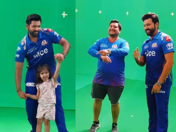 टीम इंडिया के कप्तान रोहित शर्मा ने सोशल मीडिया पर एक वीडियो शेयर किया है. इस वीडियो में वह अपनी IPL फ्रेंचाइजी मुंबई इंडियंस के लिए एक शूट करते नजर आ रहे हैं. उन्होंने इस शूटिंग के दौरान सेट पर हुई मस्ती को अपने फैंस के साथ साझा किया है. इस वीडियो में वह अपनी बेटी समायरा के साथ डांस करते भी दिखाई दे रहे हैं.