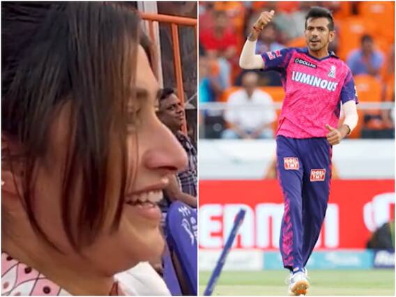 Dhanashree Verma Cheers For Yuzvendra Chahal: राजस्थान रॉयल्स और सनराइजर्स हैदराबाद के बीच IPL 2023 का चौथा मैच खेला गया. इस मैच में राजस्थान ने 72 रनों से जीत दर्ज कर टूर्नामेंट में शानदार शुरुआत की. यह मैच हैदराबाद में खेला गया था. इस मैच में राजस्थान रॉयल्स के स्टार स्पिनर युजवेंद्र चहल की वाइफ धनश्री वर्मा भी उन्हें सपोर्ट करने के लिए पहुंची थीं. वाइफ धनश्री वर्मा इस मैच में पति युजवेंद्र चहल के लिए चियर करती दिखीं और उनका यह वीडियो सोशल मीडिया पर तेज़ी से वायरल होने लगा.