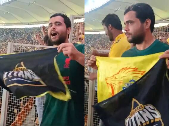 Chennai Super Kings vs Gujarat Titans, Final Fan Video: चेन्नई सुपर किंग्स ने गुजरात टाइटंस को फाइनल में हराकर खिताब पर कब्जा कर लिया. इस मुकाबले के दौरान एक दिलचस्प नजारा देखने को मिला. एक फैन मैच के दौरान गुजरात का झंडा लहरा रहा था. लेकिन जैसे ही चेन्नई जीती उसने झंडा बदल दिया. उस फैन ने गुजरात की जगह चेन्नई का झंडा लहराना शुरू कर दिया. यह फनी वीडियो सोशल मीडिया पर काफी वायरल हो रहा है.