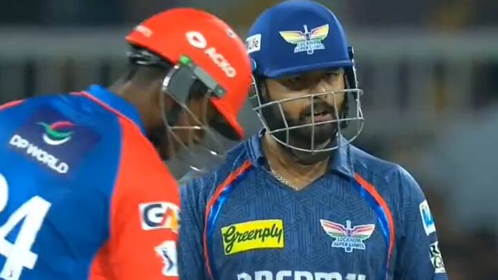 7वें ओवर में दिग्वेश राठी ने केएल राहुल को एक गेंद मिस कराई, जो उनके पैड पर जाकर लगी. जोरदार अपील को अंपायर ने नकार दिया, लेकिन गेंदबाज इस पर रिव्यू लेना चाहते थे. कप्तान ऋषभ पंत भी डीआरएस का प्रयोग करने में रूचि नहीं दिखा रहे थे लेकिन दिग्वेश ने उन्हें इसे लेने के लिए मजबूर किया. देखने पर पता चला कि गेंद विकेट के बाहर लगी थी, इस तरह लखनऊ का एक रिव्यू खराब हो गया. इसके बाद ही ऋषभ पंत ने मजाकिए अंदाज में दिग्वेश को थप्पड़ मारने के लिए हाथ उठाया.