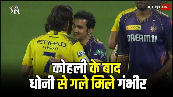 MS Dhoni And Gautam Gambhir Hug: आईपीएल 2024 के मैच नंबर 22 में महेंद्र सिंह धोनी और गौतम गंभीर का आमना-सामना था. इस मैच में धोनी की चेन्नई सुपर किंग्स ने जीत दर्ज की, जबकि मेंटॉर की भूमिका निभा रहे गंभीर की कोलकाता नाइट राइडर्स को इस सीज़न की पहली हार मिली. चेन्नई के चेपॉक स्टेडियम में खेले गए मुकाबले में चेन्नई ने कोलकाता को 7 विकेट से हराया. लेकिन इस मैच के बाद धोनी और गंभीर के बीच का खूबसूरत पल वायरल हो गया.