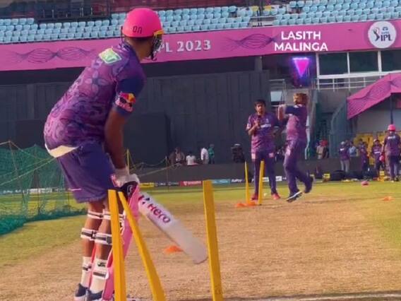 Lasith Malinga Spin Bowling: IPL 2023 में आज (8 अप्रैल) राजस्थान रॉयल्स की टीम दिल्ली कैपिटल्स का सामना करेगी. यह मुकाबला गुवाहाटी के बारसपारा क्रिकेट स्टेडियम में खेला जाना है. मैच से पहले इस मैदान पर एक दिलचस्प नजारा देखने को मिला. यहां पूर्व तेज गेंदबाज लसिथ मलिंगा जो कि वर्तमान में राजस्थान रॉयल्स के तेज गेंदबाजी कोच हैं, वह स्पिन बॉल फेंकते नजर आए.