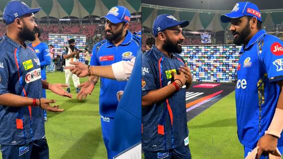 IPL 2024: मुंबई इंडियंस और लखनऊ सुपर जायंट्स का बीते मंगलवार आमना-सामना हुआ, जिसमें LSG ने 4 विकेट से रोमांचक जीत दर्ज की थी. इसी मुकाबले का एक वीडियो सामने आ रहा है, जिसमें रोहित शर्मा, LSG के गेंदबाज अमित मिश्रा से मस्ती करते हुए दिख रहे हैं. मिश्रा मुंबई के खिलाफ मैच में नहीं खेले थे. वायरल वीडियो में रोहित शर्मा, अमित मिश्रा और मुरली कार्तिक भी खड़े हुए हैं, जहां रोहित अपनी उम्र के बारे में बात कर रहे हैं. बता दें कि रोहित शर्मा ने 30 अप्रैल को अपना जन्मदिन मनाया है और अब उनकी उम्र 37 साल हो गई है. वहीं अमित की उम्र 41 साल को भी पार कर चुकी है.