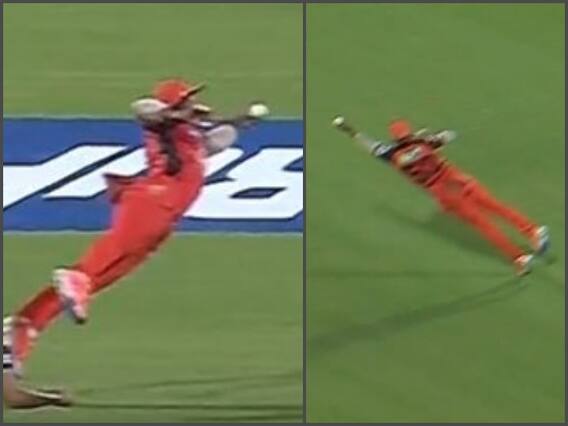 Sunrisers Hyderabad vs Gujarat Titans, Rahul Tripathi Catch: मुंबई के डीवाई पाटिल स्टेडियम में गुजरात टाइटंस और सनराइजर्स हैदराबाद के बीच आईपीएल 2022 का 21वां मुकाबला खेला जा रहा है. इस मैच में हैदराबाद के कप्तान केन विलियमसन ने टॉस जीतकर गेंदबाजी करने का फैसला लिया है. पिछले दो मैचों में अर्धशतक जड़ने वाले शुभमन गिल इस मैच में सिर्फ 7 रन बनाकर आउट हो गए. राहुल त्रिपाठी ने उनका शानदार कैच पकड़ा.