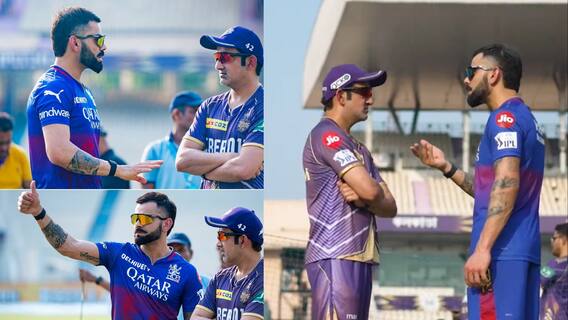 IPL 2024: रविवार के दिन कोलकाता नाइट राइडर्स और रॉयल चैलेंजर्स बेंगलुरु का मैच होने वाला है. दोनों टीमों का यह मैच कोलकाता में स्थित ईडन गार्डन्स में खेला जाएगा. उससे पहले दोनों टीमें तैयारियां करती हुई दिखाई दीं, लेकिन इस दौरान विराट कोहली और गौतम गंभीर की मुलाकात ने महफिल लूट ली है. KKR के X हैंडल से एक वीडियो शेयर की गई है, जिसमें विराट कोहली और गौतम गंभीर अपने पुराने मसलों को भुलाकर एक-दूसरे से बात करते हुए दिखाई दे रहे हैं. विराट कोहली, KKR के ट्रेनिंग कैम्प में आए और टीम के मेंटर गंभीर से खूब चर्चा करते नजर आए.