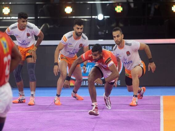 Gujarat Giants vs Puneri Paltan: प्रो कबड्डी लीग (PKL) 2022 के 18वें मुकाबले में गुजरात जॉयंट्स ने पुनेरी पलटन को 47-37 के बड़े अंतर से हराया है. तीन मैचों में यह गुजरात की पहली जीत है तो वहीं पुनेरी को तीन मैचों में दूसरी हार मिली है. फजल अत्राचली और मोहम्मद नबीबख्श की वापसी पुनेरी के लिए अच्छी नहीं साबित हुई और टीम को बड़ी हार झेलनी पड़ी है.